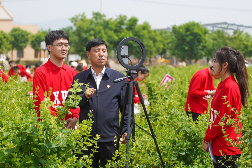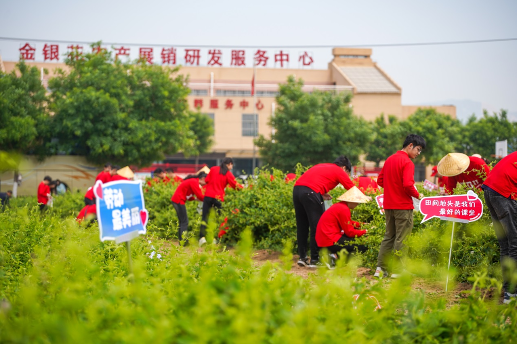 大二學生趙迪第一次來到農村田野,心里新鮮又激動。她說:“通過今天的活動,我對金銀花這種植物有了新的了解,蒲城人民種植金銀花一步步脫貧致富的曲折歷程讓我很受觸動。”