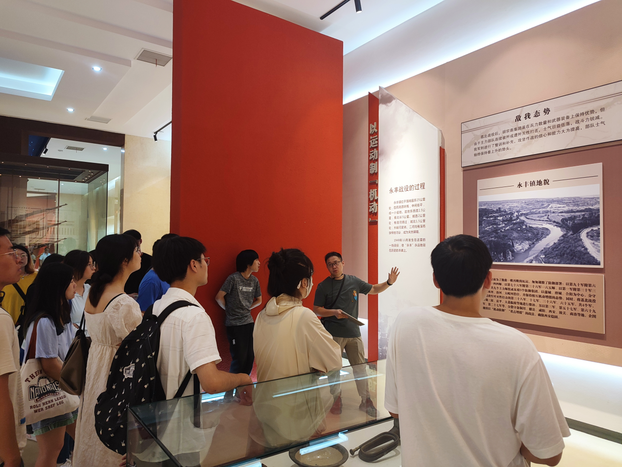 全體同志走進永豐鎮(zhèn)永豐革命烈士陵園,首先映入眼簾的是一面呈弧形的巨幅紀念墻。紀念墻正面,繪制的是永豐戰(zhàn)役的戰(zhàn)斗場景,背面則是此次戰(zhàn)役的簡介,以及部分烈士英名錄。跟隨著解說員,全體同志走進永豐革命烈士陵園展覽館,展覽館內(nèi)陳列著一件件革命先輩留下的資料和文物,鮮明地記錄了當時永豐戰(zhàn)役的戰(zhàn)況和革命精神,重現(xiàn)了當年那段烽火連天的歲月,黨員同志們共同學習了先烈們英勇無畏、百折不撓的奮斗精神。