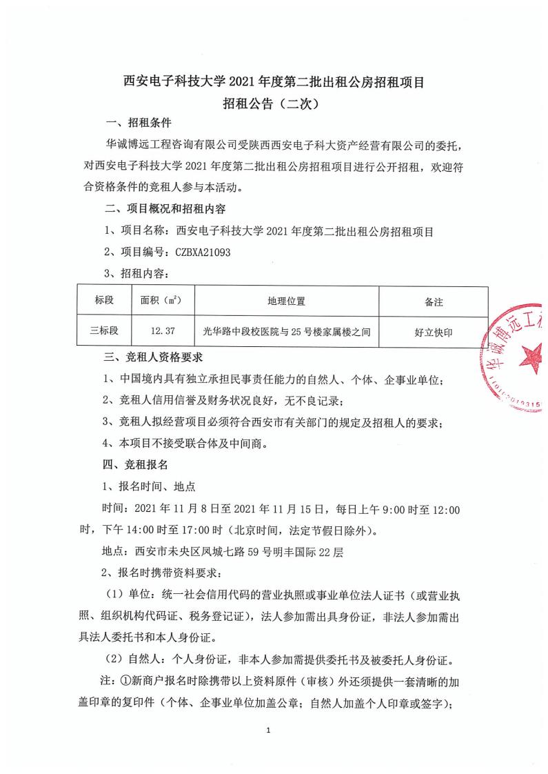 簡(jiǎn)介:西安電子科技大學(xué)2021年度第二批出租公房招租項(xiàng)目招租公告(二次)